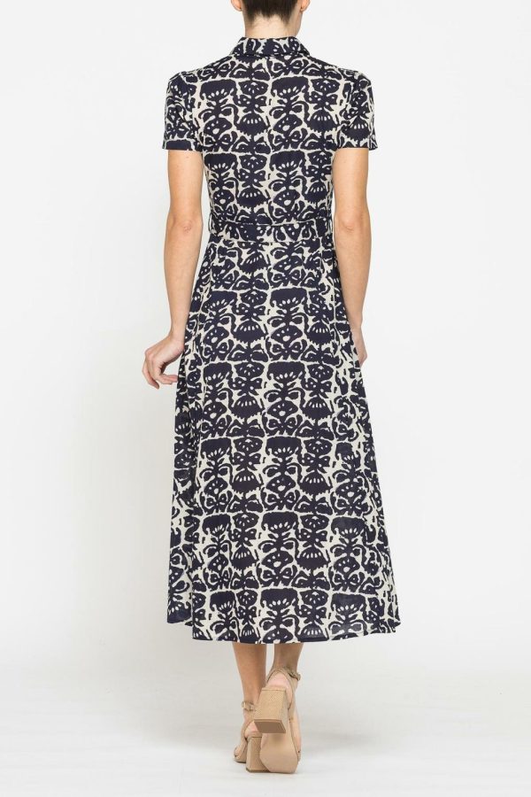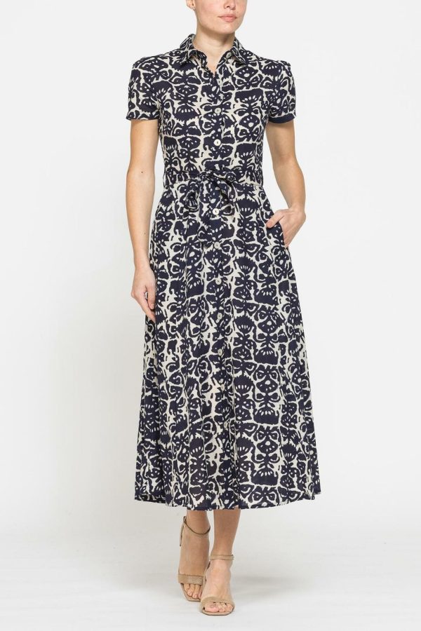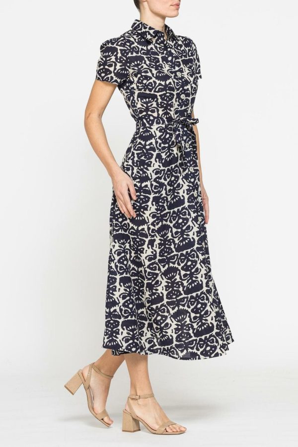 Abito lungo realizzato in voile di cotone leggero, ideale per le giornate estive. Le maniche corte presentano una leggera arricciatura sulla spalla. Il collo è classico, mentre l’abbottonatura lungo il davanti aggiunge un dettaglio elegante. La cintura annodabile in vita, realizzata nello stesso tessuto, permette di definire la silhouette. Dotato di tasche laterali e una gonna leggermente svasata