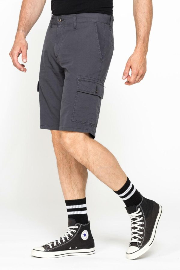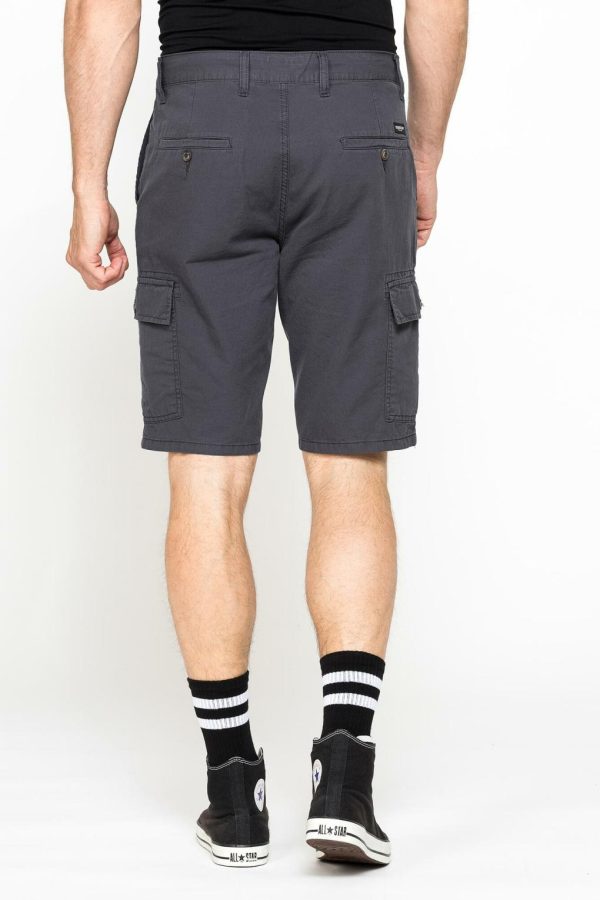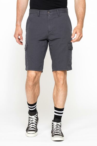 Bermuda cargo da uomo con tasche frontali alla francese, tasche a filetto con bottone sul retro e ampi tasconi laterali con pattina e chiusura a bottone. Modello dalla vestibilità regolare, con chiusura centrale a zip e bottone, passanti in vita ed etichetta applicata sul retro. Realizzato in gabardina leggera di cotone da 6 once, è un pantalone corto comodo, pratico e leggero, perfetto per l’estate.