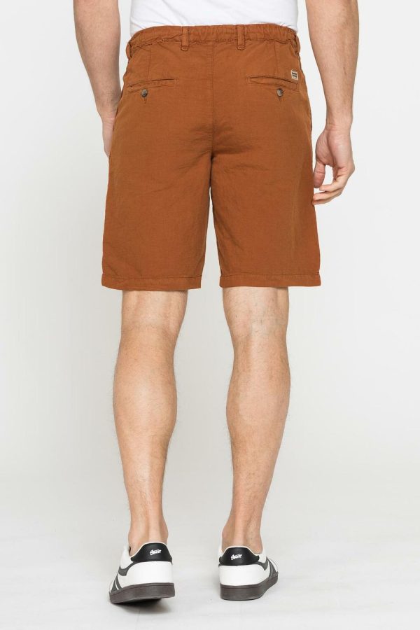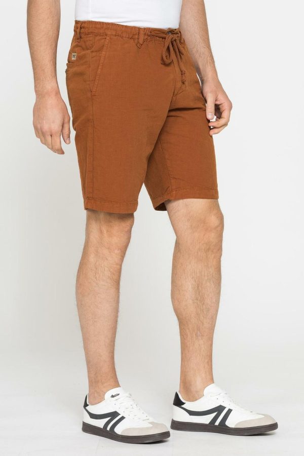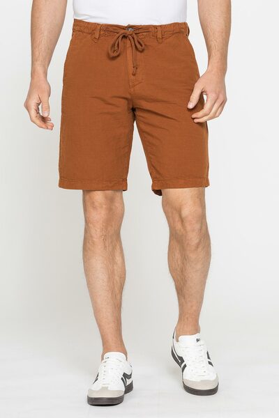 Bermuda da uomo in tessuto di cotone misto lino, realizzati in colore tinta unita, perfetti per la stagione estiva. Modello chino dalla vestibilità classica, con vita e gamba regolari. Presenta tasche frontali alla francese, tasche posteriori a filetto con chiusura a bottone ed elastico in vita con coulisse. Chiusura centrale con zip e bottone. Un capo fresco, leggero e versatile, ideale per affrontare le giornate più calde con comfort e stile.