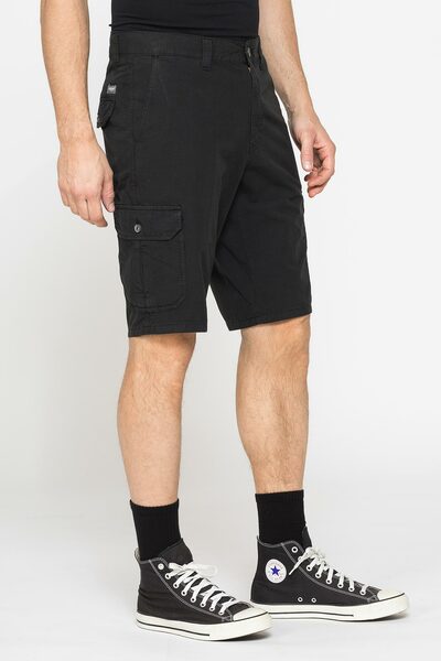 Pantalone corto da uomo modello cargo con tasche frontali alla francese, tasche con bottone e pattina sul retro e due pratici tasconi laterali. Modello dalla vestibilità regolare, con chiusura centrale a zip e bottone, passanti in vita ed etichetta applicata sul retro. Realizzato in ripstop da 6 once, un materiale leggero ma resistente, ideale per realizzare un pantalone comodo e pratico, perfetto per l’estate.