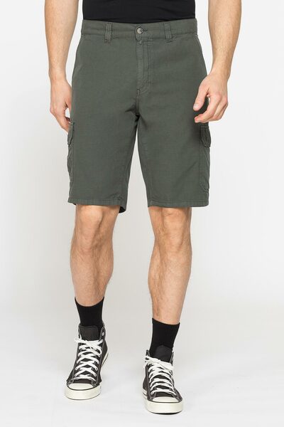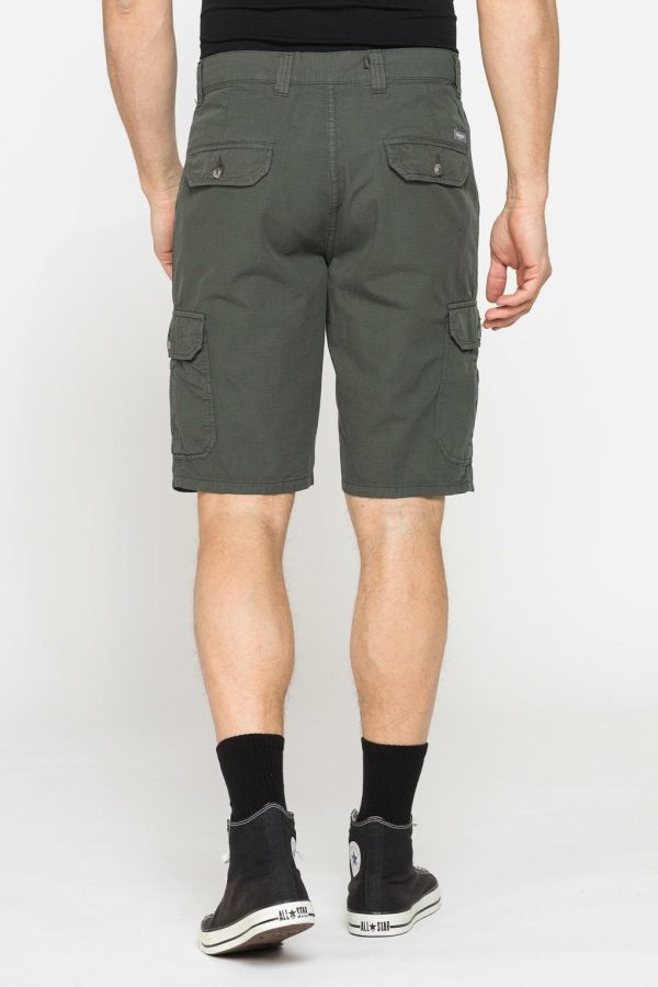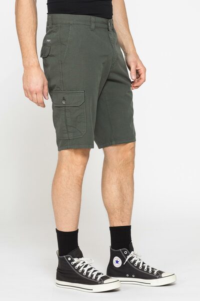 Pantalone corto da uomo modello cargo con tasche frontali alla francese, tasche con bottone e pattina sul retro e due pratici tasconi laterali. Modello dalla vestibilità regolare, con chiusura centrale a zip e bottone, passanti in vita ed etichetta applicata sul retro. Realizzato in ripstop da 6 once, un materiale leggero ma resistente, ideale per realizzare un pantalone comodo e pratico, perfetto per l’estate.