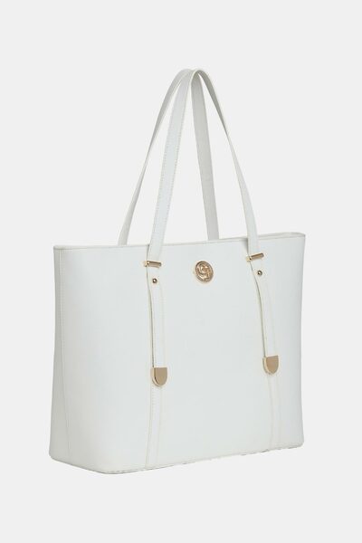 Dal design essenziale e raffinato, questa borsa shopper in ecopelle nera è l’accessorio ideale per ogni giorno. Dotata di manici lunghi per un comodo trasporto a spalla, presenta dettagli in metallo dorato e un logo centrale che donano un tocco di eleganza. Spaziosa e funzionale, è perfetta per accompagnarti in ufficio, durante lo shopping o nelle tue uscite quotidiane. Dimensioni 36x29x15