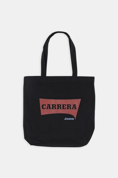 Tote Bag in cotone con stampa logo Carrera Jeans. Dimensioni: larghezza 40 cm, altezza 42 cm.