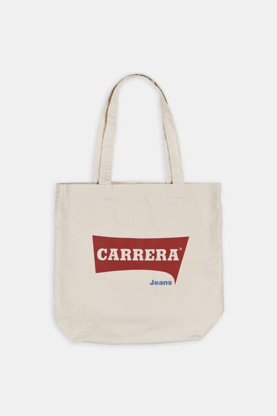 Tote Bag in cotone con stampa logo Carrera Jeans. Dimensioni: larghezza 40 cm, altezza 42 cm.