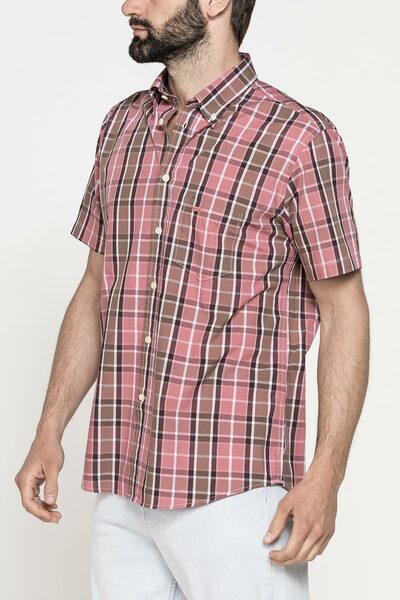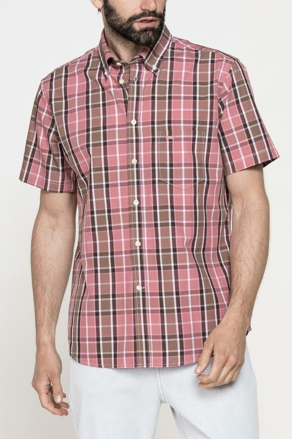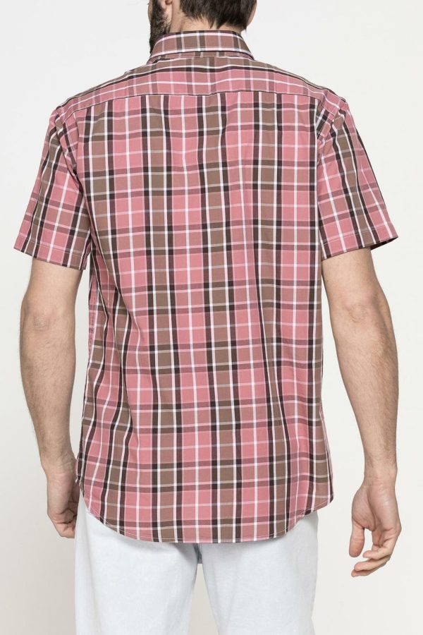 Carrera Jeans CAMICIA A MANICA CORTA IN COTONE CON FANTASIA Fantasia A Quadri Nei Toni Di Rosa, Marrone E Bianco | Camicie Uomo