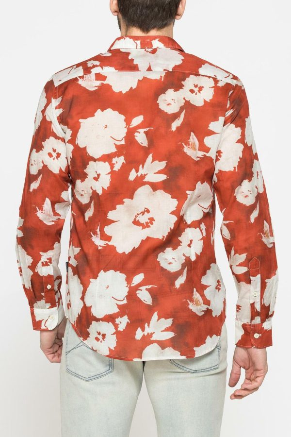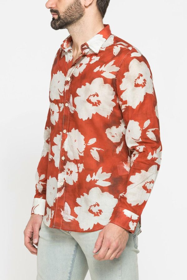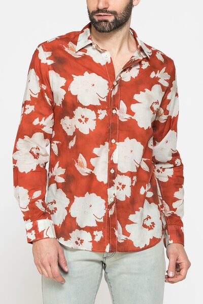 Carrera Jeans CAMICIA ESTIVA IN COTONE LEGGERO CON COLLO ITALIANO Fantasia Floreale Nei Toni Di Colore Mattone E Beige | Camicie Uomo