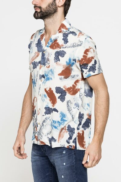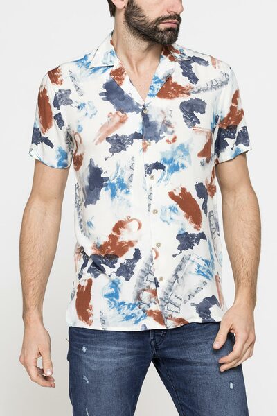 Camicia da uomo a maniche corte con colletto bowling aperto. Vestibilità regular fit. Realizzata in tessuto di viscosa, leggero e confortevole, con diverse fantasie stampate. Fresca e moderna questa camicia è ideale per un look estivo accattivante.