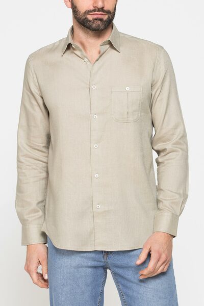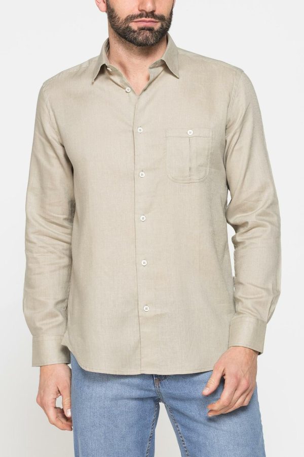 Carrera Jeans CAMICIA IN LINO E LYOCELL A MANICA LUNGA DA UOMO Beige | Camicie Uomo