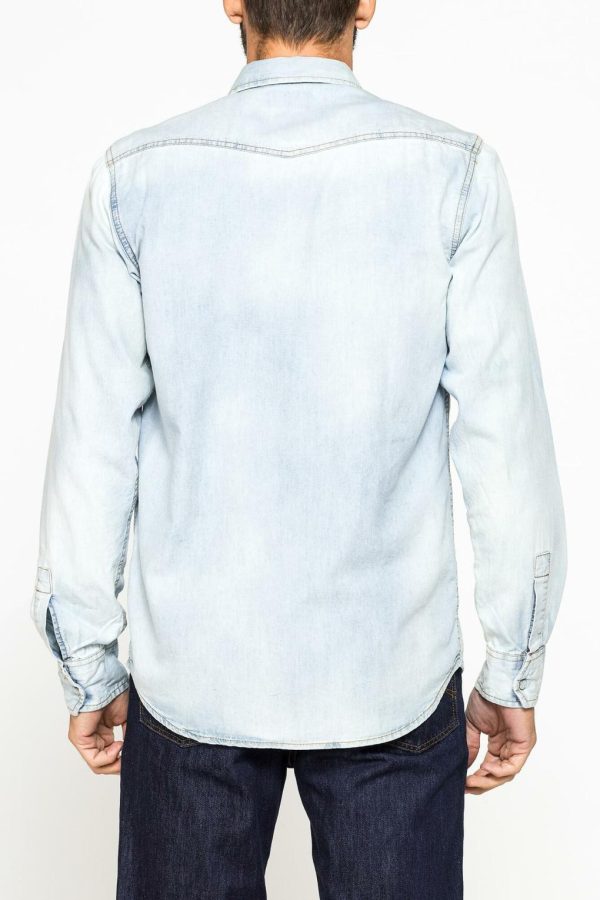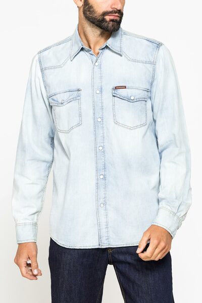 Camicia a manica lunga realizzata in leggero denim da 7 once, in puro cotone. Il modello è caratterizzato da un doppio taschino con pattina e bottoni, mentre la chiusura è impreziosita da bottoni a pressione effetto madreperla. Il lavaggio con trattamento dona al tessuto un aspetto autentico e vissuto, rendendo questo capo perfetto per un look casual e versatile.
