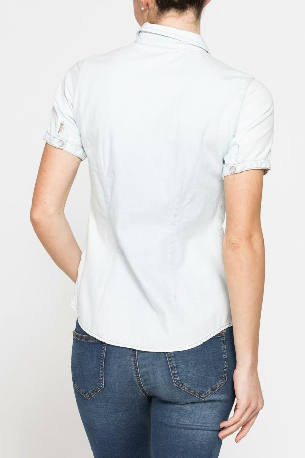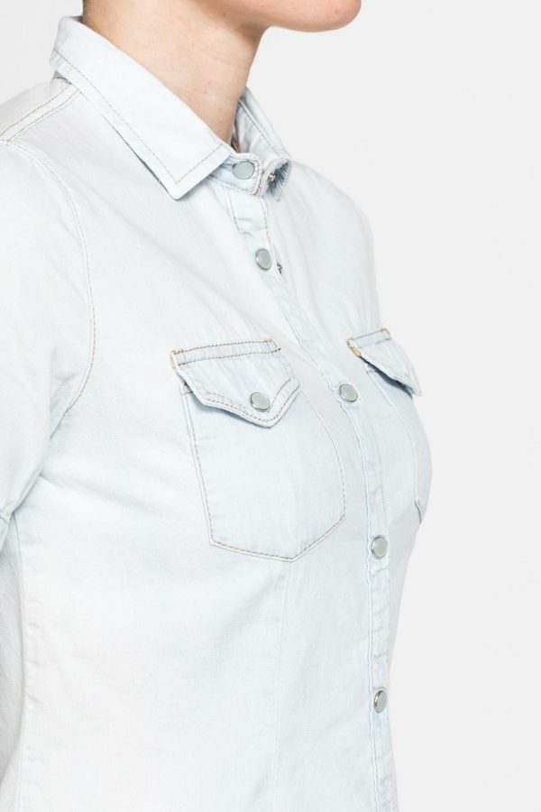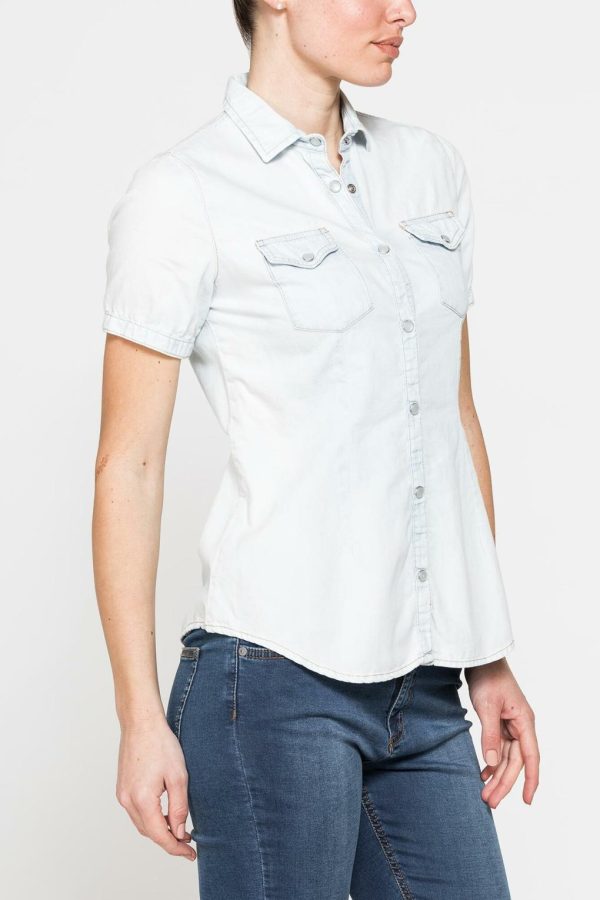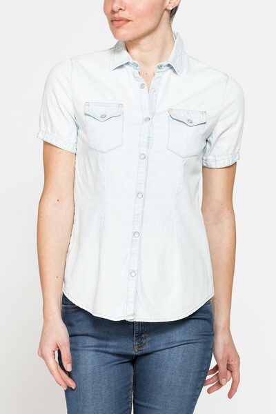 Nuovo modello di camicia in denim, dalla vestibilità asciutta e con le maniche corte. Apertura centrale con bottoncini a pressione e taschini prontali a petto. È un capo funzionale ma alla moda, perfetto per un look casual. Realizzato in tessuto denim leggero 7 once.