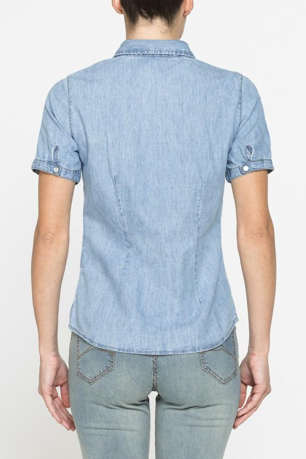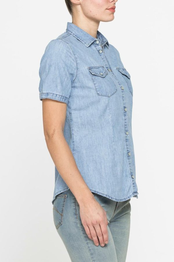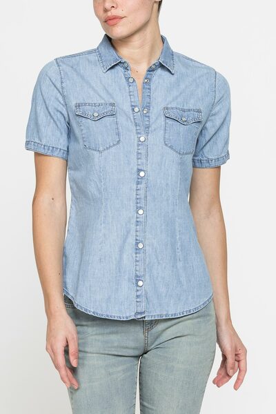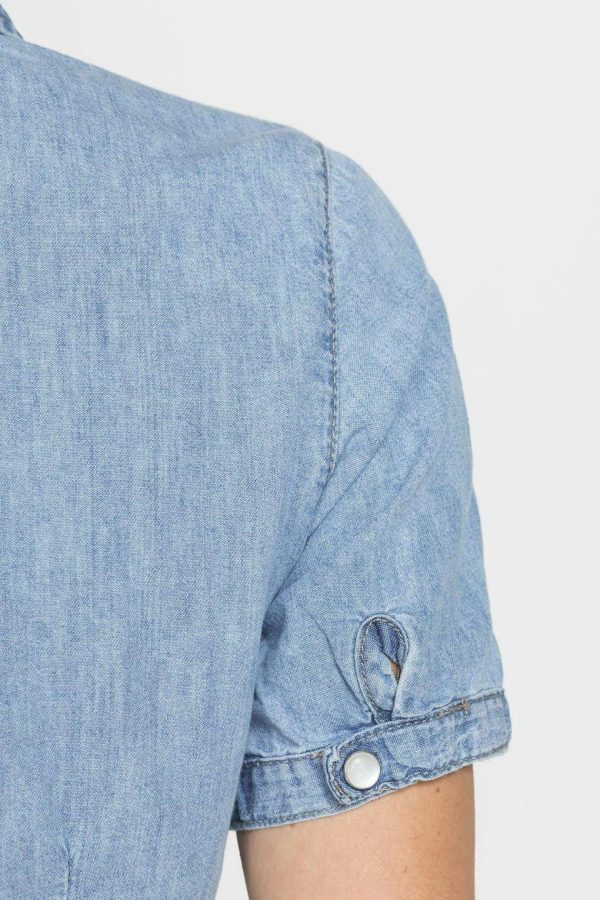 Nuovo modello di camicia in denim, dalla vestibilità asciutta e con le maniche corte. Apertura centrale con bottoncini a pressione e taschini prontali a petto. È un capo funzionale ma alla moda, perfetto per un look casual. Realizzato in tessuto denim leggero 7 once.