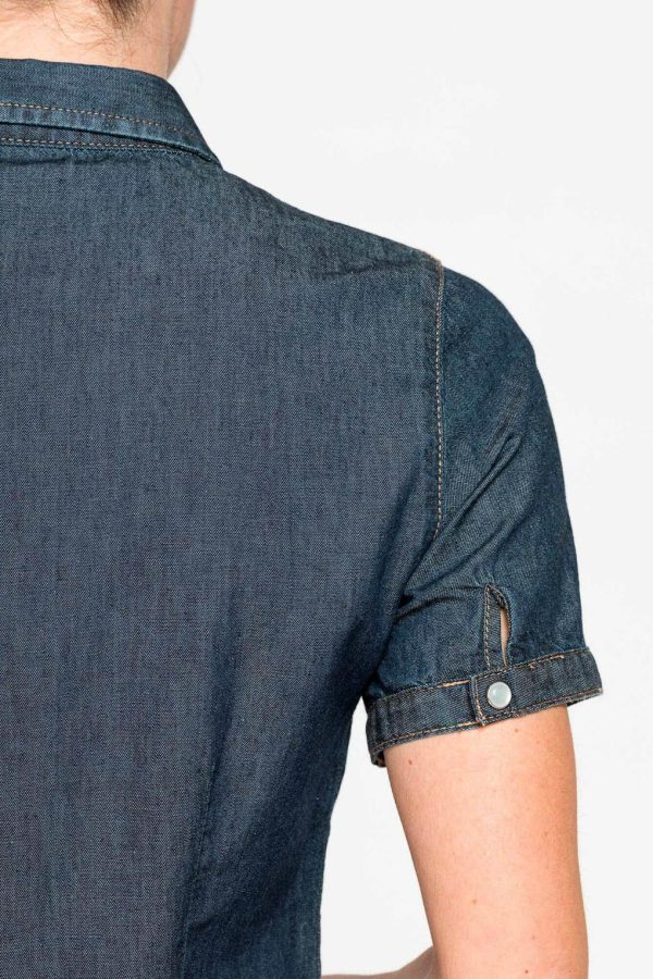 Nuovo modello di camicia in denim, dalla vestibilità asciutta e con le maniche corte. Apertura centrale con bottoncini a pressione e taschini prontali a petto. È un capo funzionale ma alla moda, perfetto per un look casual. Realizzato in tessuto denim leggero 7 once.