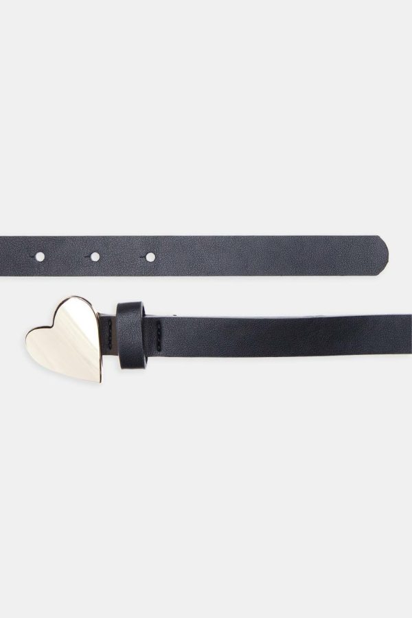 Cintura con fibbia a forma di cuore color oro. Dimensioni (l,L,h): 85 × 2.5 cm