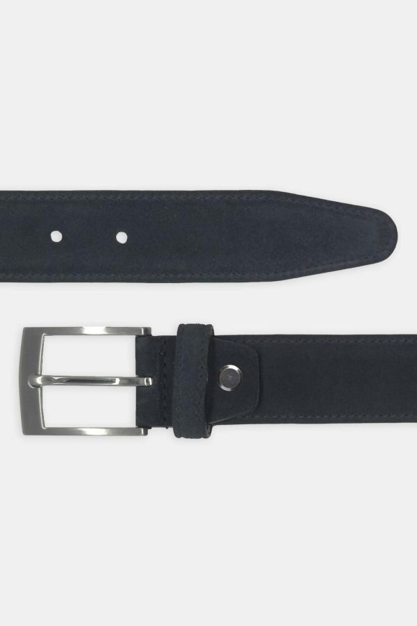 Cintura da uomo regolabile, realizzata in morbida pelle scamosciata. Fibbia realizzata con materiali Nickel Free. Altezza della cintura 3,5 cm.