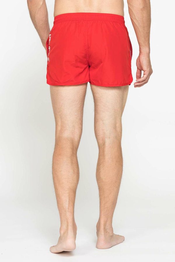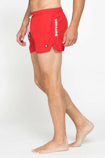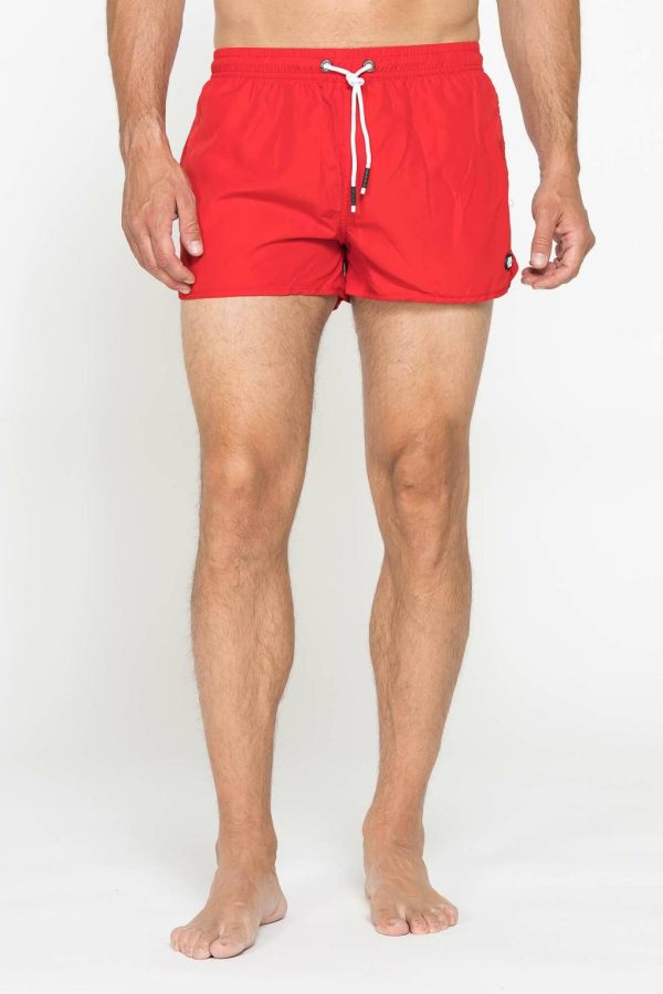 Costume da bagno estivo a lunghezza media. Questo modello presenta due tasche davanti alla francese, retina interna e coulisse in vita. Vestibilità regolare.