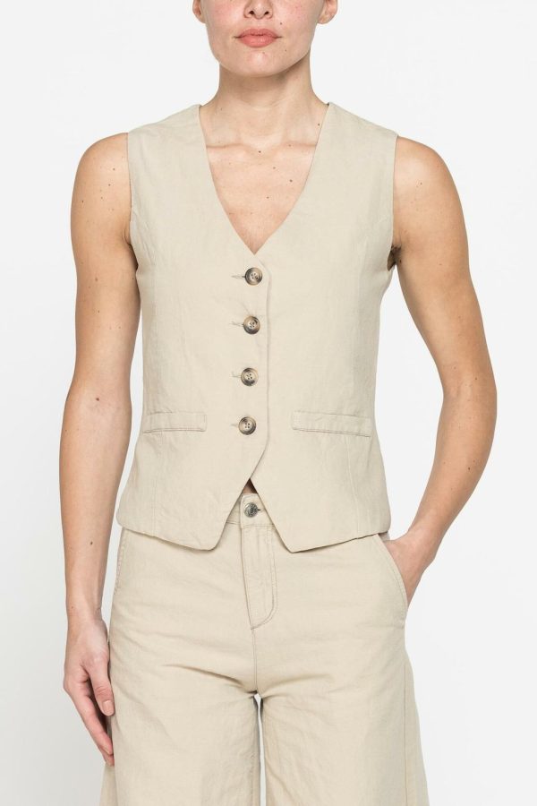 Carrera Jeans GILET IN LINO COTONE Beige | Camicie Donna