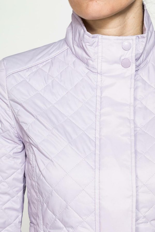 Giubbino corto dalla vestibilità aderente, caratterizzato dalla trapuntatura fitta. Presenta la chiusura frontale zip e bottoni, tasche a filetto chiuse con bottone sui tagli di sagomatura. Realizzata in nylon con tecnologia Water Resistant.