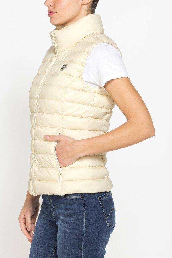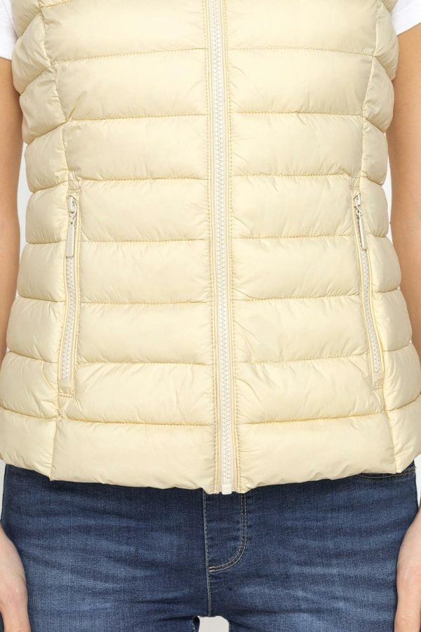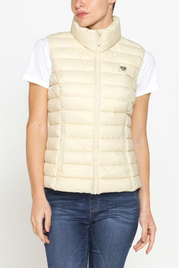 Giubbino senza maniche ultralight con imbottitura leggera, realizzato in tessuto resistente all’acqua. Modello senza capuccio con zip frontale.