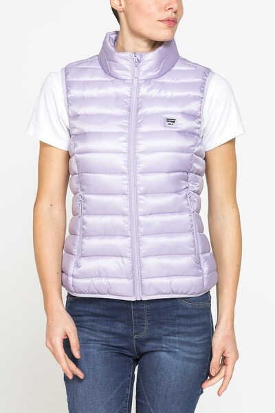 Giubbino ultralight smanicato dalla vestibilità regolare con imbottitura ultra leggera in fiocco d’ovatta. Modello con collo alto, tasche frontali chiuse con zip. Elastico in lycra su fondo e giromanica. Realizzato in tessuto ripstop di poliestere resistente all’acqua.
