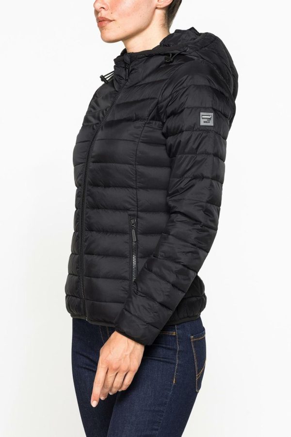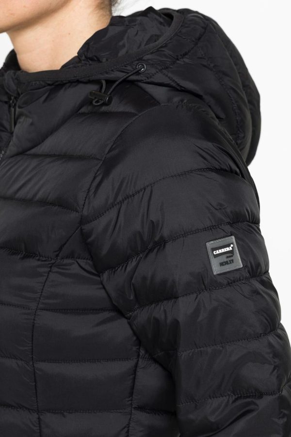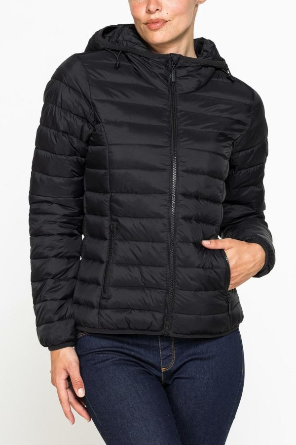 Giubbotto resistente alla pioggia con imbottitura ultra leggera in fiocco d’ovatta. Cappuccio e zip davanti. Elastico su fondo capo e fondo manica. Vestibilità regolare.