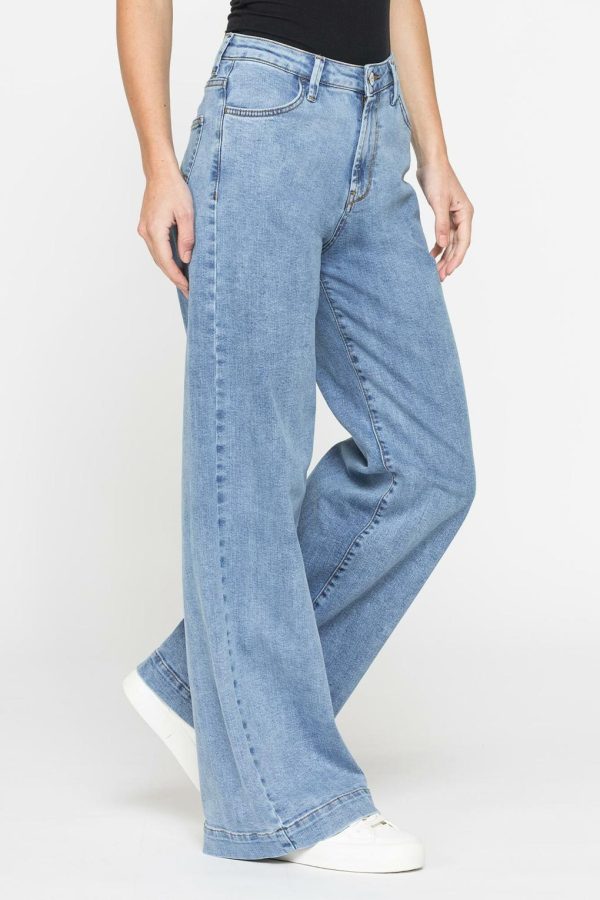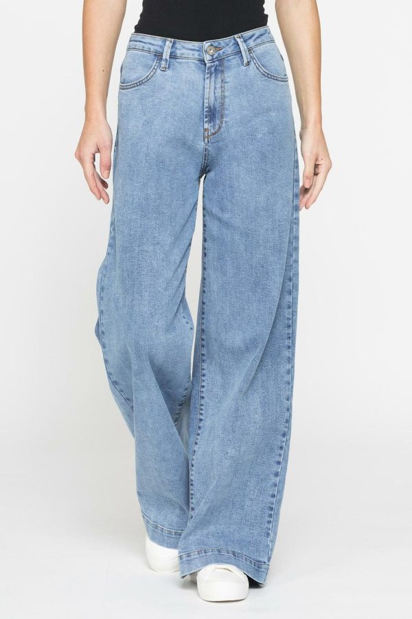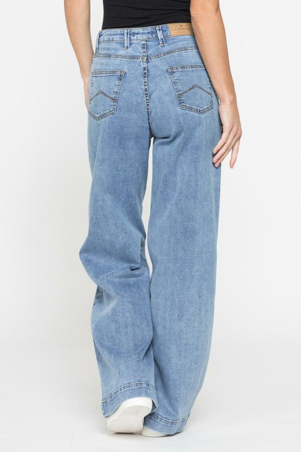 Jeans 5 tasche a palazzo, con una vestibilità ampia e comoda che scende dritta lungo la gamba. La vita alta valorizza la figura, mentre il taglio palazzo offre comfort e movimento. Realizzati in denim morbido e leggermente elastico, sono perfetti per un look casual ma elegante.