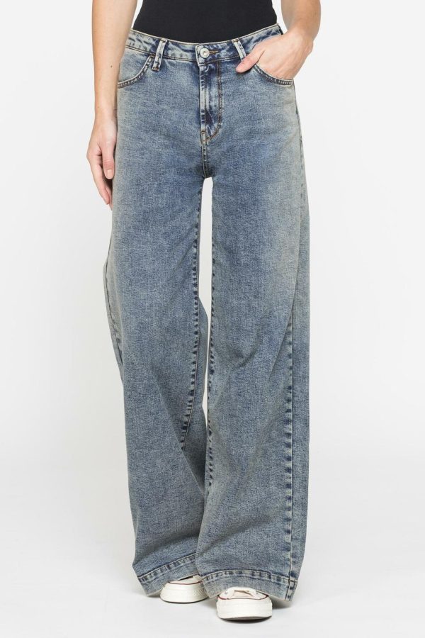 Jeans 5 tasche a palazzo, con una vestibilità ampia e comoda che scende dritta lungo la gamba. La vita alta valorizza la figura, mentre il taglio palazzo offre comfort e movimento. Realizzati in denim morbido e leggermente elastico, sono perfetti per un look casual ma elegante.
