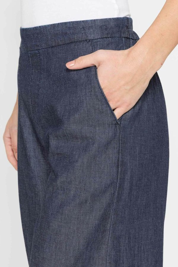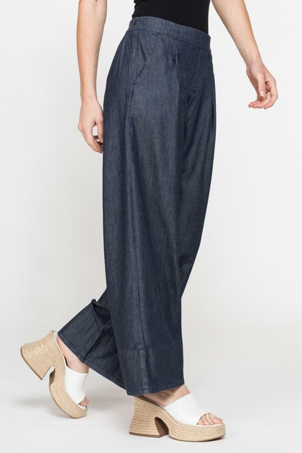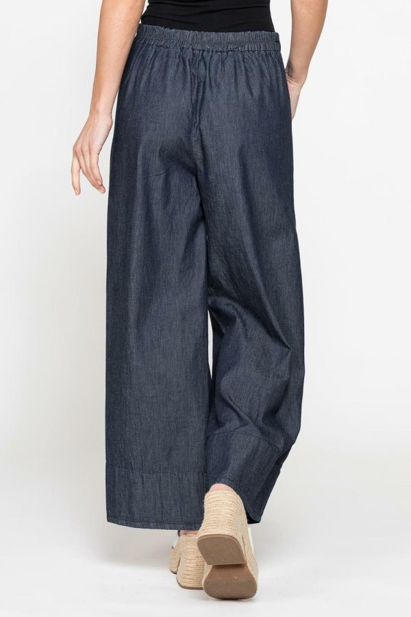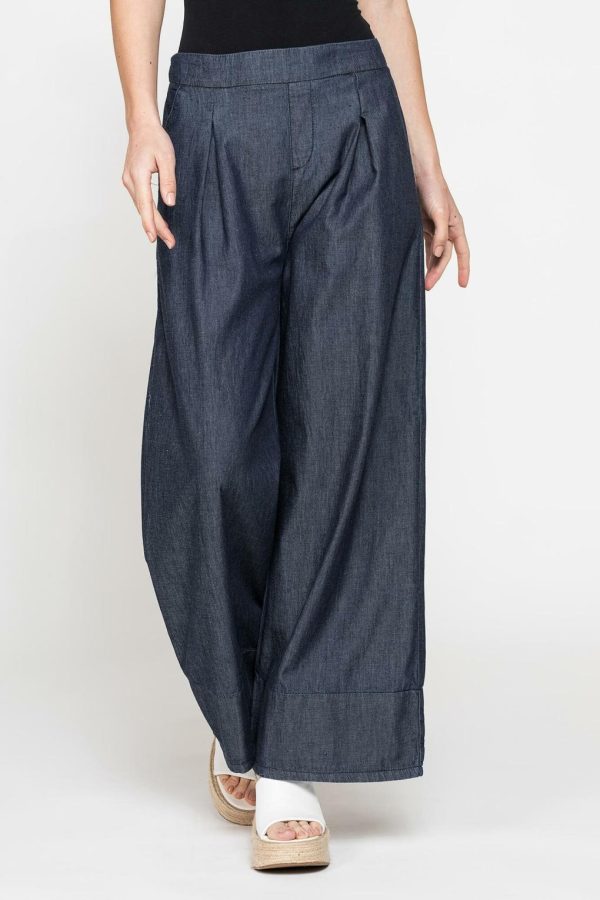 Jeans a palazzo con vestibilità comoda, con elastico in vita e pieghe frontali. Vita alta e gamba molto ampia con risvolto sul fondo. La scelta perfetta che combina l’eleganza alla comodità. Realizzato in denim leggero 100%CO 6,3 once.