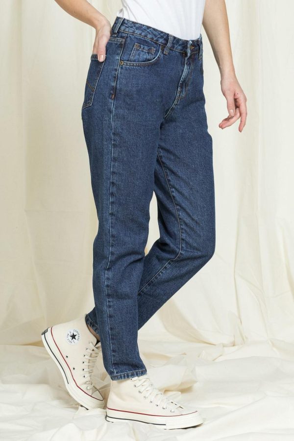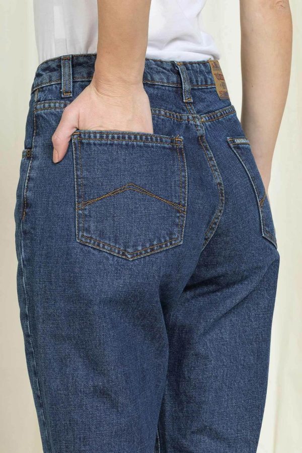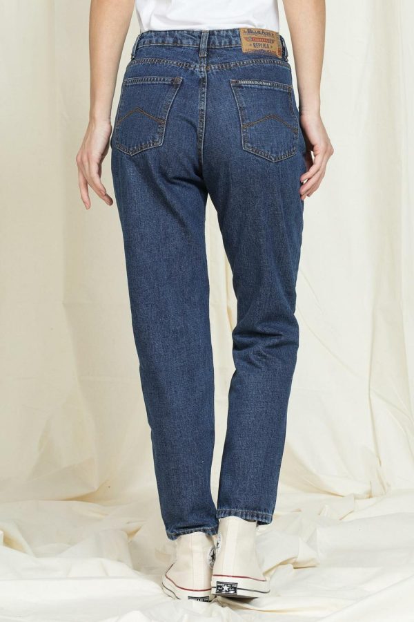 Jeans dalla vestibilità originale Mom con vita alta e gamba comoda. 5 tasche, chiusura con botton e zip con passanti in cintura. Realizzato in denim vintage fermo 13 once in puro cotone. Perfetto per i veri amanti del vintage.