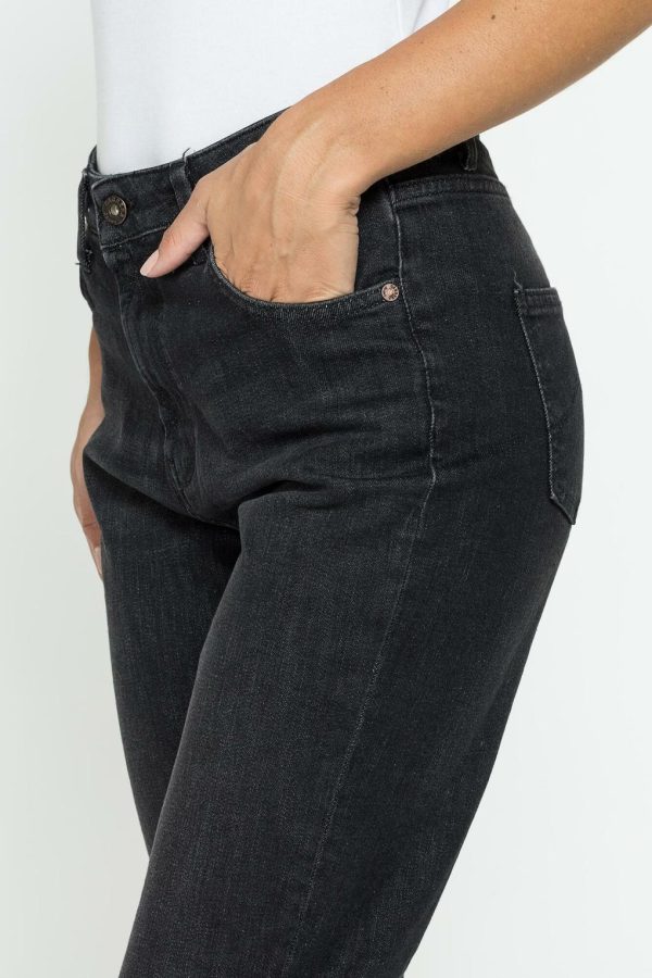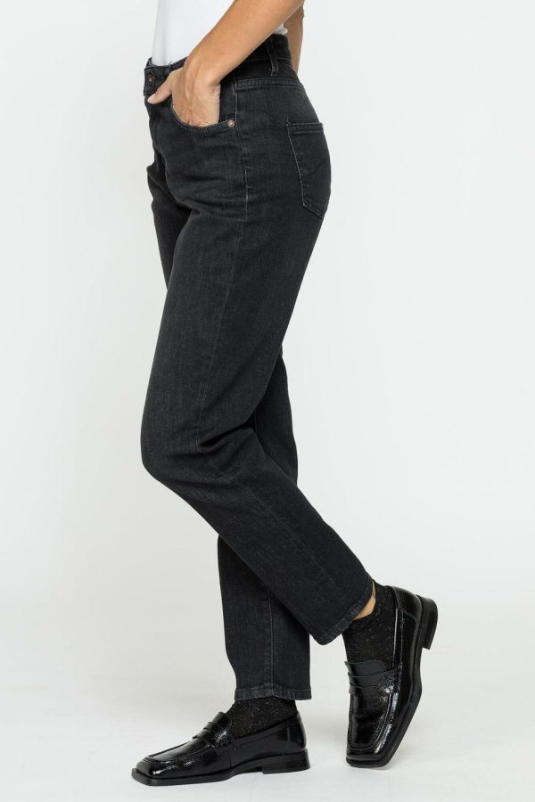 Jeans modello “Mom” dallo stile vintage, con vita alta e gamba comoda. Cinque tasche con passanti in cintura e apertura frontale con zip e bottoni. Realizzato in denim stretch 12,2 once con tecnologia Spintech Elastic che dona il massimo comfort sulla pelle grazie al filo di elastan interamente rivestito dal cotone.