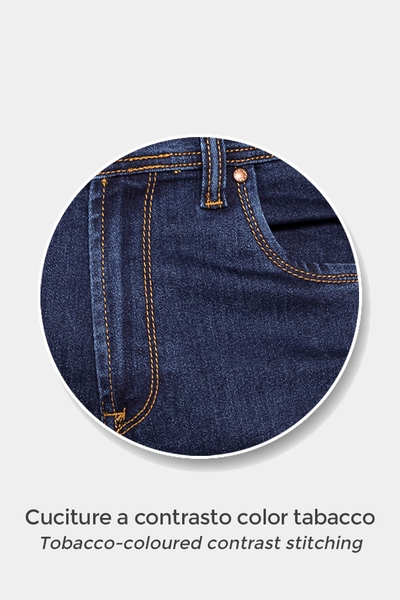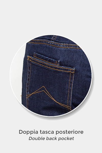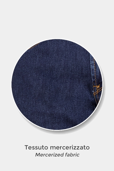 Un jeans da uomo a cinque tasche dal taglio sartoriale. Il modello 707 ha la vita regolare e comoda e la gamba leggermente arcuata che segue al meglio le linee del corpo e si chiude con un fondo regolare che cade perfettamente sulla scarpa. Questo modello presenta passanti per cintura in vita e chiusura centrale con zip e bottone ed è realizzato in denim mercerizzato da 12 once, per donare al capo un aspetto elegante e un colore intenso. Il tessuto è realizzato con tecnologia “Spintech – solo cotone sulla pelle” per il massimo comfort e benessere.