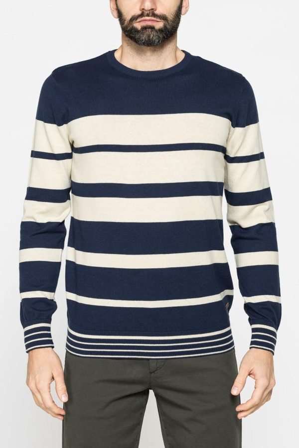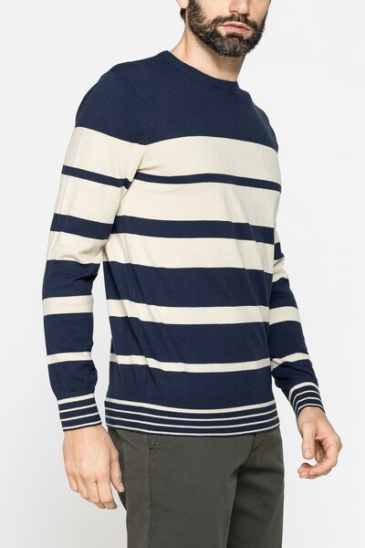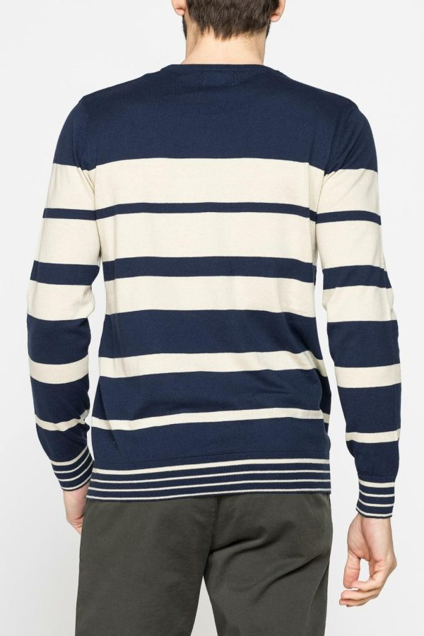Carrera Jeans MAGLIA GIROCOLLO A RIGHE IN COTONE ORGANICO Bianco Latte/Blu Scuro | Maglie Uomo