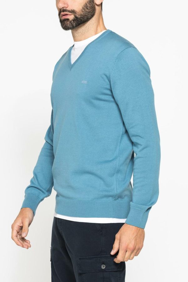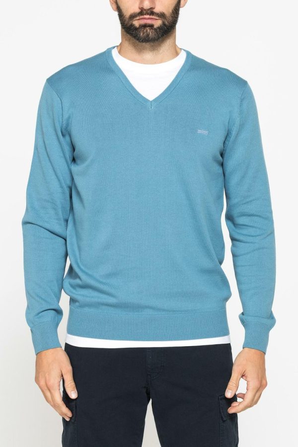 Carrera Jeans MAGLIA SCOLLO A V IN COTONE ORGANICO Azzurro Opale | Maglie Uomo