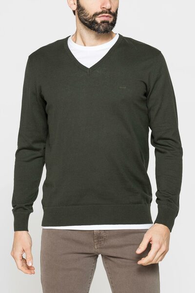 Carrera Jeans MAGLIA SCOLLO A V IN COTONE ORGANICO Verde Scuro | Maglie Uomo
