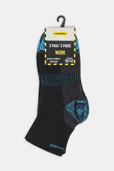 Confezione da 3 paia di calze basse da lavoro. Massima traspirabilità, tallone e punta con rinforzo per un miglior comfort e resistenza.