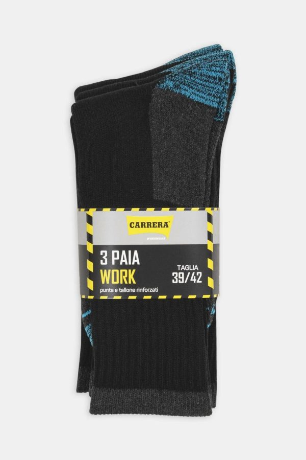 Confezione da 3 paia di calze da lavoro altezza mezzo polpaccio. Massima traspirabilità, tallone e punta con rinforzo per un miglior comfort e resistenza.