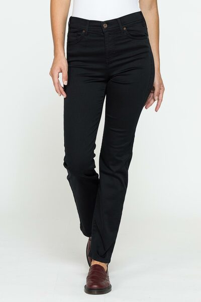 Pantalone cinque tasche dalla vestibilità regolare, con vita media e gamba dritta. Chiusura con zip e bottone e passanti in cintura. Realizzato in raso di cotone super elasticizzato 9,8 once con tecnologia Spintech Elastic. Caratterizzato dal trattamento aloe con proprietà benefiche per il corpo.