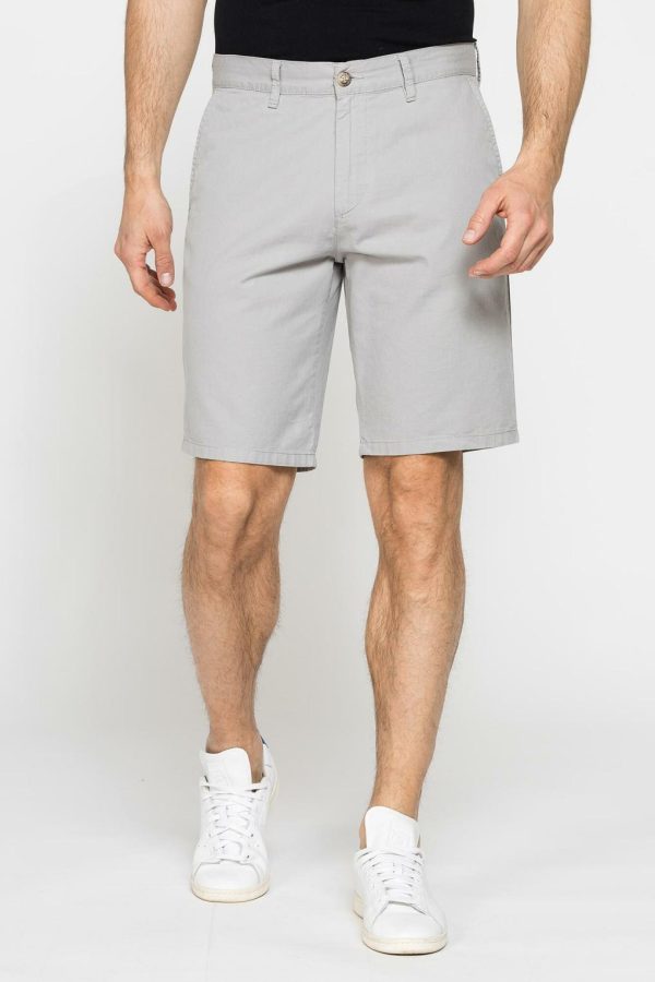 Bermuda da uomo modello chino con tasche alla francese davanti e tasche posteriori a filetto, classico ed elegante. Il pantalone si presenta con passanti in cintura e chiusura vita con bottone e zip. Tessuto realizzato in gabardina leggera di puro cotone. Comodo e leggero, il capo essenziale per l’estate.