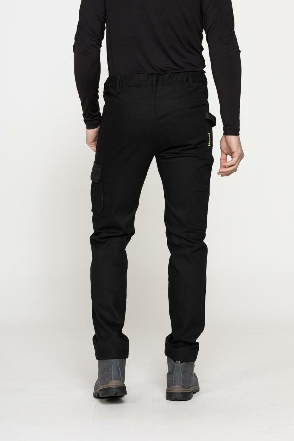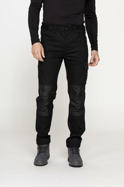 Il pantalone della linea “Carrera Workwear” è un modello da lavoro con toppe rinforzate in cordura e cuciture triple per una resistenza massima, senza rinunciare alla comodità. La cintura ha un taglio confortevole con i fianchi elasticizzati. Chiusura con zip e bottone, tasche porta oggetti e tascone cargo con patta e velcro.