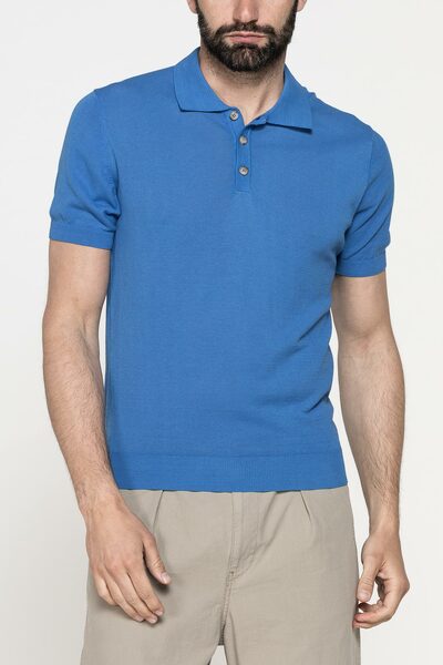 Polo a manica corta da uomo, dalle linee classiche e vestibilità regolare, con chiusura a 2 bottoni, realizzata in crêpe di cotone. Questo tessuto innovativo, fresco e asciutto, la rende la scelta ideale per la stagione estiva. La particolare torsione del filato crea un effetto irregolare che conferisce un aspetto unico al capo. La lavorazione imperfetta è un dettaglio che ne valorizza l’autenticità, rendendo ogni polo un pezzo esclusivo.