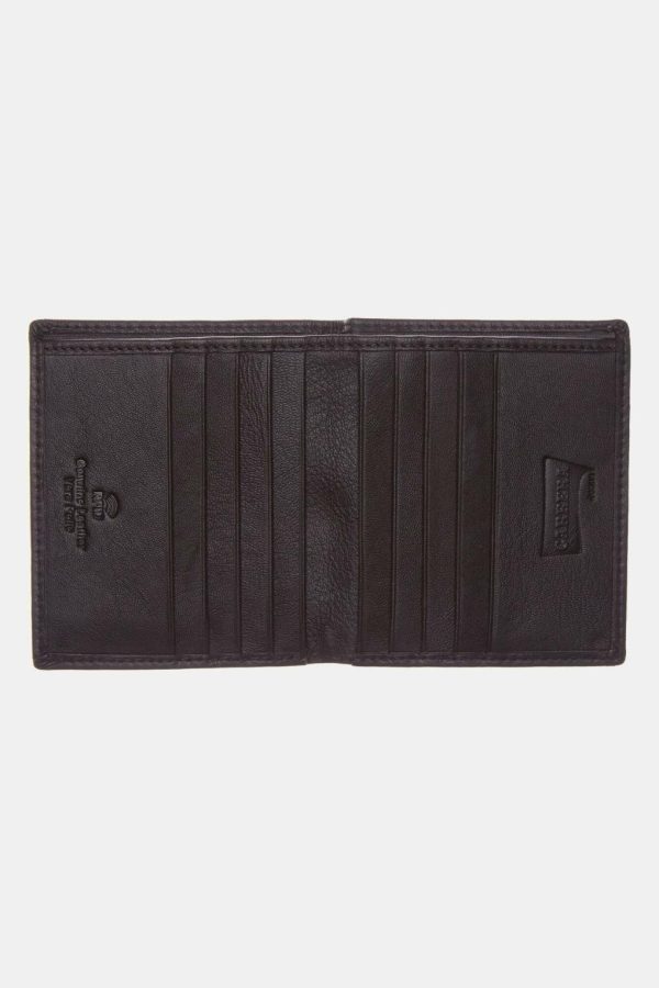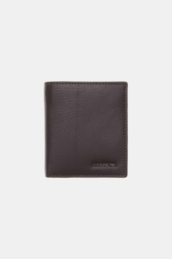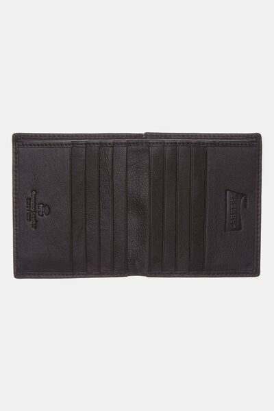 Portafoglio da uomo bifold verticale con scomparto banconote interno, portadocumenti eportacarte. Realizzato in vera pelle e dotato di sistema di sicurezza RFID. Dimensioni: 10,5 x 12 cm.