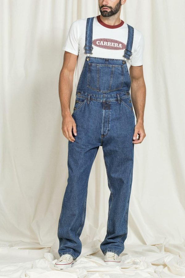 Salopette in jeans della collezione Carrera Replica, ispirata alle iconiche salopette da lavoro. Modello dal sapore vintage con bottoni sui lati per essere indossato comodamente, bretelle con lunghezza regolabile e tasca centrale porta utensili. Bottoni e rivetti personalizzati, cuciture rinforzate per durare nel tempo. Realizzata nel tessuto denim pesante “old style” da 13.5 once, il tessuto originale Carrera dal 1965.