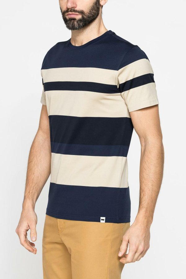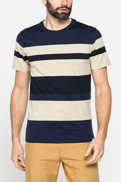Maglietta a manica corta realizzata in leggero jersey cotone mercerizzato. Tema a righe con il cotone tinto filo. Modello dalla vestibilità regolare e scollo rotondo con bordo a costine. La tua t-shirt a righe preferita, disponibile in diverse varianti.