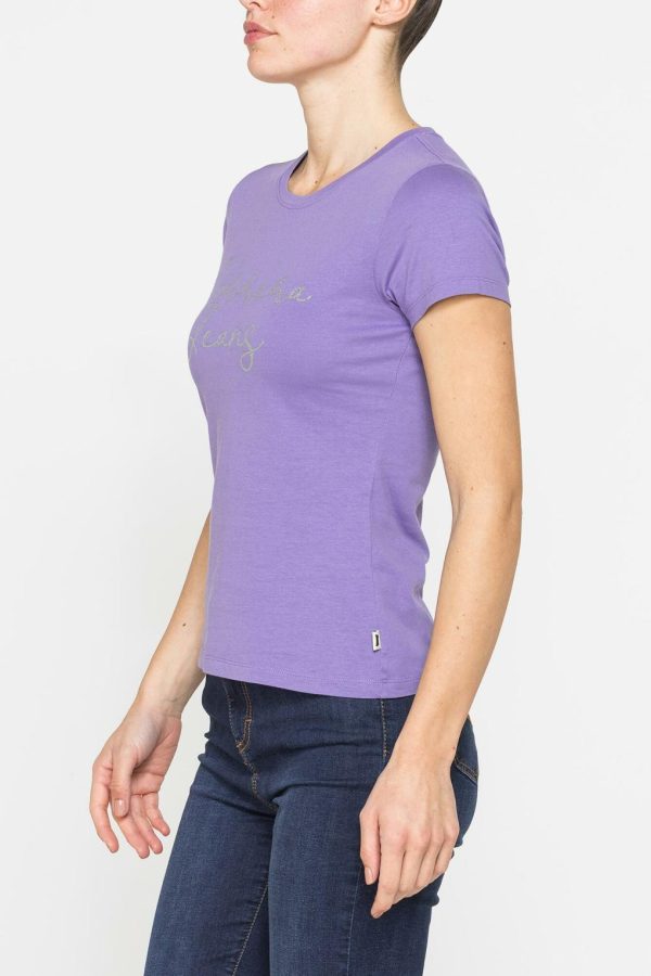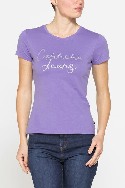 T-shit girocollo dalla vestibilità aderente con maniche corte. Modello con stampa glitter frontale. Realizzata in jersey 100% cotone.