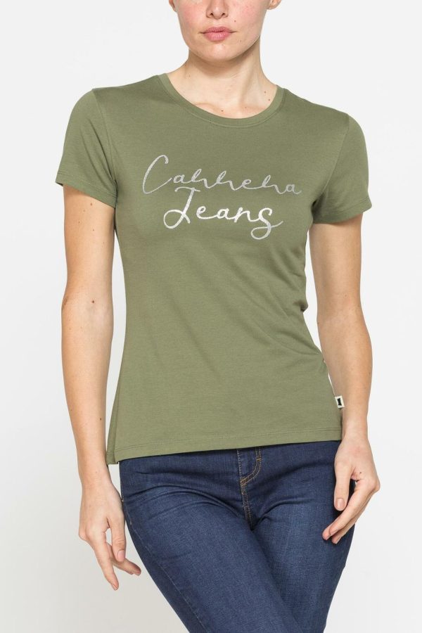 T-shit girocollo dalla vestibilità aderente con maniche corte. Modello con stampa glitter frontale. Realizzata in jersey 100% cotone.