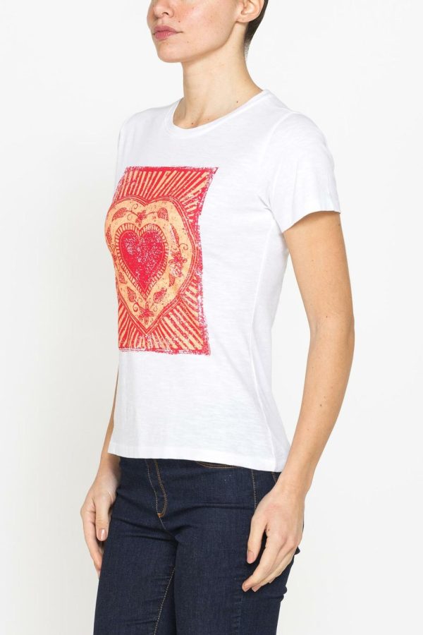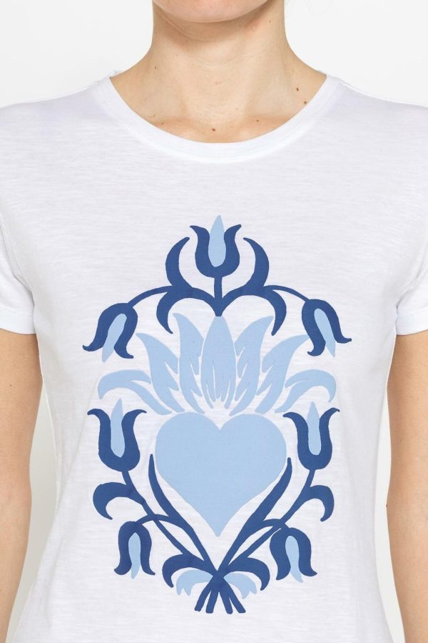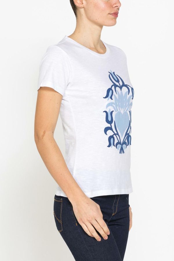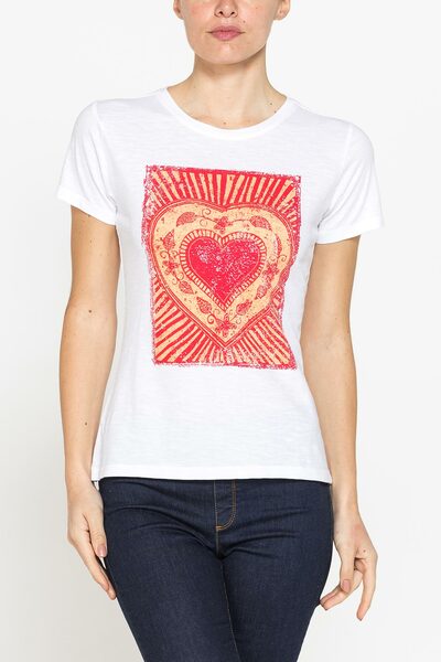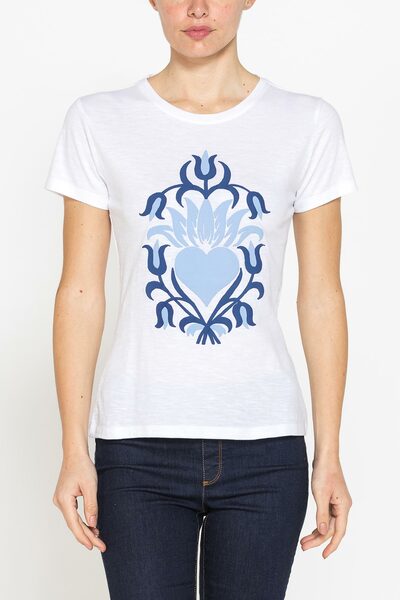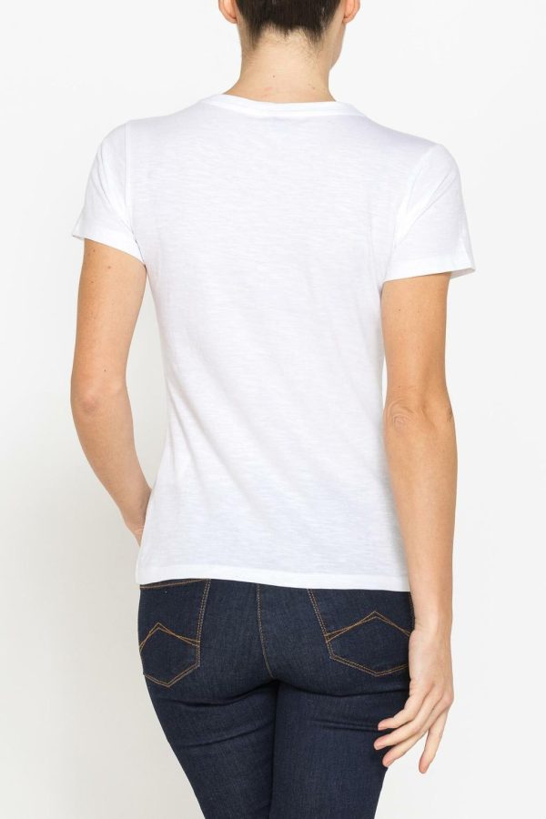 T-shirt girocollo dalla vestibilità aderente con mancige corte. Modello con stampa frontale. Realizzata in jersey slub 100% cotone.