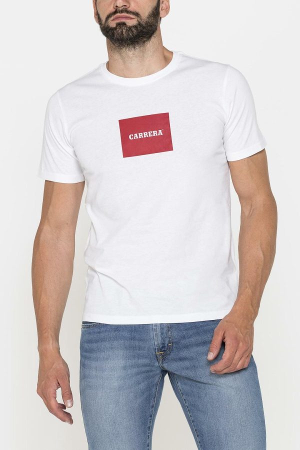 Maglietta a manica corta dal taglio classico, con girocollo e vestibilità regolare, realizzata in morbido jersey di puro cotone. Leggera e traspirante, è perfetta per ogni stagione e garantisce un comfort ottimale per tutto il giorno. Il design essenziale è arricchito dalla stampa frontale Carrera, che dona un tocco distintivo senza rinunciare alla versatilità. Un capo intramontabile, facile da abbinare a qualsiasi outfit, ideale per un look casual e disinvolto.