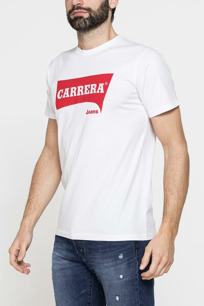 Maglietta a manica corta dal taglio classico, con girocollo e vestibilità regolare, realizzata in morbido jersey di puro cotone. Leggera e traspirante, è perfetta per ogni stagione e garantisce un comfort ottimale per tutto il giorno. Il design essenziale è arricchito dalla stampa frontale Carrera, che dona un tocco distintivo senza rinunciare alla versatilità. Un capo intramontabile, facile da abbinare a qualsiasi outfit, ideale per un look casual e disinvolto.